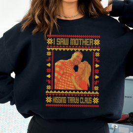 I Saw Mother Kissing Travy Claus Christmas Sweatshirt, Ugly Christmas Sweater N1331