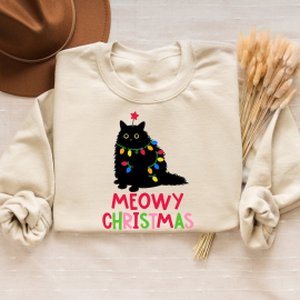 Meowy Christmas Shirt, Cat Christmas Sweatshirt, Cat Lover Xmas T-Shirt, Christmas Cat Mom Sweater, Catmas Gift For New Year, Xmas Crewneck