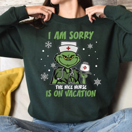 Nurse Christmas Sweatshirt, Nurse Shirt, I Am Sorry The Nice Nurse Is On Vacation Shirt, Nurse Life Tee, Christmas Grinch Tee