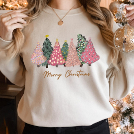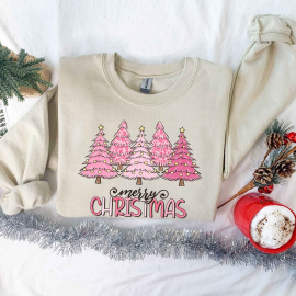 Pink Merry Christmas Tree Sweatshirt, Cute Womens Christmas Crewneck, Holiday Sweatshirt, Winter Sweatshirt, Christmas Sweater, Xmas Shirt