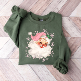 Pink Santa Hat Sweatshirt, Vintage Santa Shirt, Retro Pink Santa Shirt, Classic Christmas, Pink Christmas, Holiday Clothing, Gift For Women