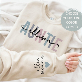 Personalized Auntie Sweatshirt with Kid Names on Sleeve, Mothers Day Gift, Birthday Gift for Aunt, New Aunt Gift, Cool Aunt Sweater