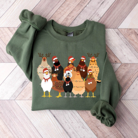 xd0xa1ute Christmas Chickens Sweatshirt, Christmas Farm Animals Sweatshirt, Womens Christmas Chicken Sweatshirt,Christmas Holiday Sweatshirt Gift