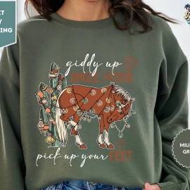 Cowboy Christmas Sweatshirt, Giddy Up Jingle Horse Pick Up Your Feet, Howdy Country Christmas Sweater, Christmas Horse